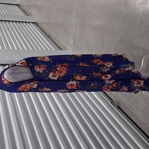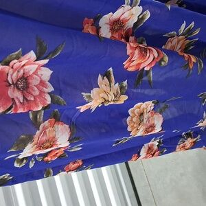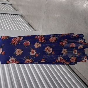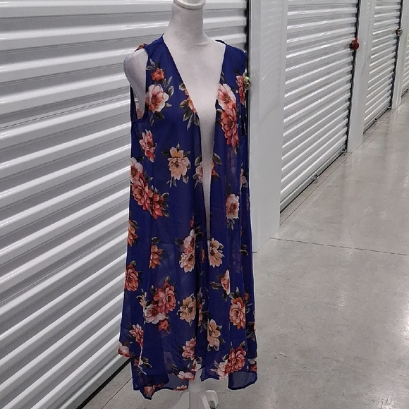 Zury Sleeveless Cover-up. Bright Blue with Floral Design Hi Lo Hem. 39" front. 48" back.Never worn. On size fits most.