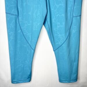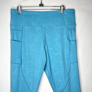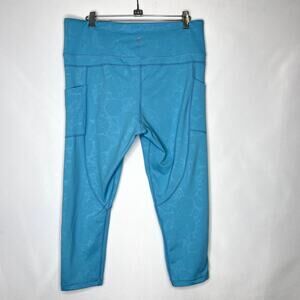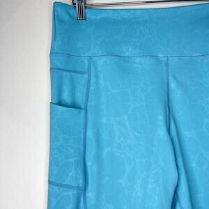 Zyia Active 14-16 Light Blue High Waisted Flower Print Cropped Leggings
