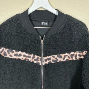 Zyia Active Black Leopard Flying V Fleece Zip Up Bomber Style Jacket Size XL