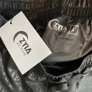 Zyia Active Black animal print bomber shorts, women’s size Large. New with tags.
