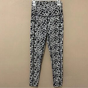 Zyia Active Black White Snow Leopard Print Brilliant Pocket Workout Leggings
