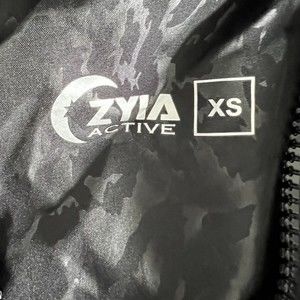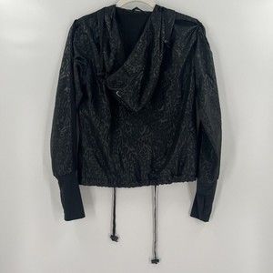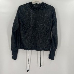 Zyia Active Bomber Jacket Windbreaker Black Animal Print Hooded Lightweight XS