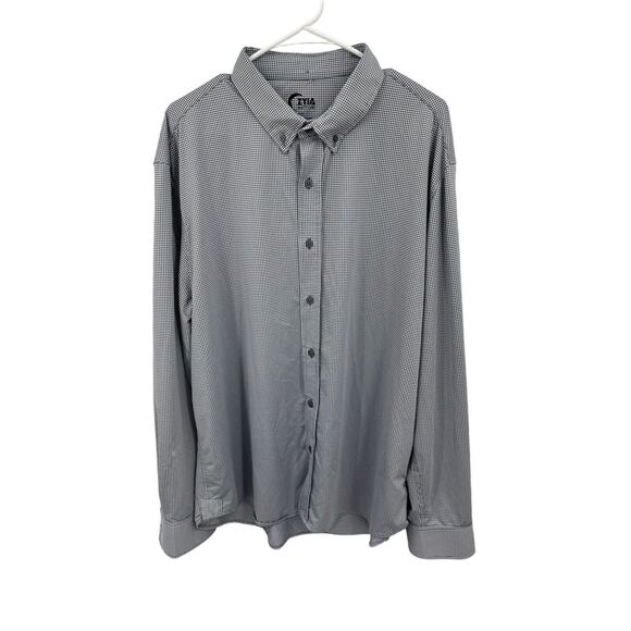 Zyia Active button down shirt. Slate gray and white check. Size 3XL.