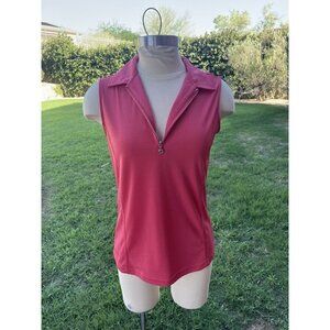 Zyia Active Clubhouse Pink Mesh Zip Up Sleeveless Polo Shirt Size Small.