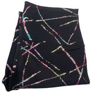 Zyia Active Colorful Metallic Paint Splatter Black Pink Cropped Leggings Sz 4