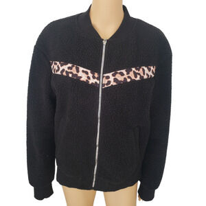 Zyia Active Flying V Black Fleece Animal Print Jacket Zip Up Medium