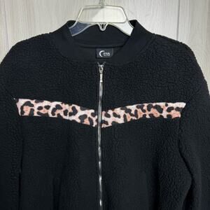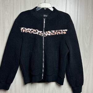 Zyia Active Flying V Fleece Womens Medium Black Leopard Sherpa Zip Up Jacket