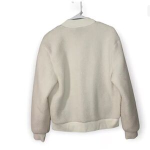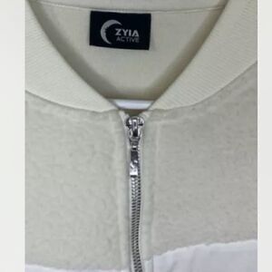 Zyia Active Flying V Bomber Jacket Fleece Sherpa Teddy Full Zip White Medium