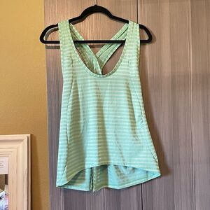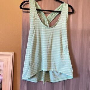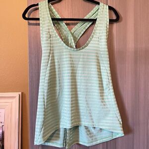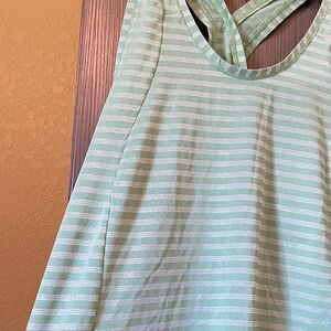 Zyia Active Green While Shadow Stripe Racerback Open Back Tank Top