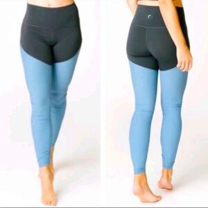 Zyia Active HR Storm Parallel Luxe Blue Gray Ruching Leggings Dance Yoga Block