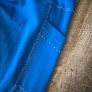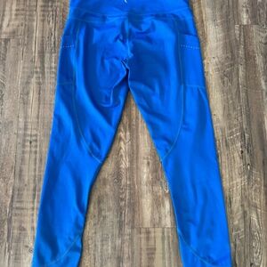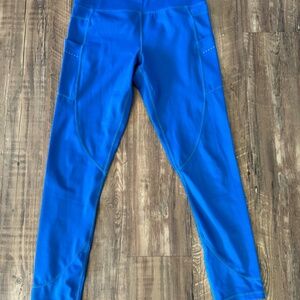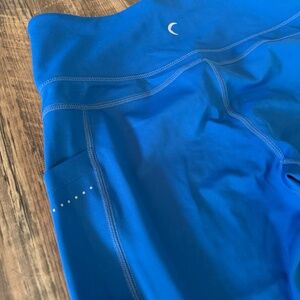 Only worn a few times, basically brand new. Always washed cold, hang to dry. Bright blue, high waist, crop length . Size is 6-8. I'd call them a M.