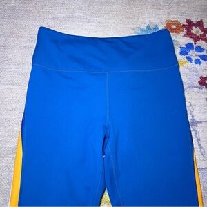 Zyia Active Leggings Womens size 8-10 Yellow Blue Side Stripe Stretch Athletic