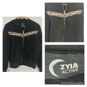 Zyia Active Leopard Flying V Teddy Fleece Black Jacket - Size Small