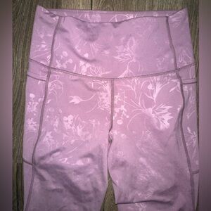 Zyia Active Light Lilac Purple Floral Print Cropped Leggings Size 4 EUC Pockets