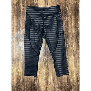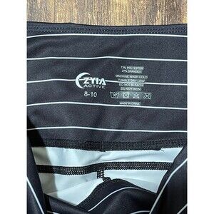 Zyia Active Light & Tight Pocket Crop black & white striped leggings size 8-10