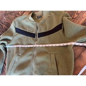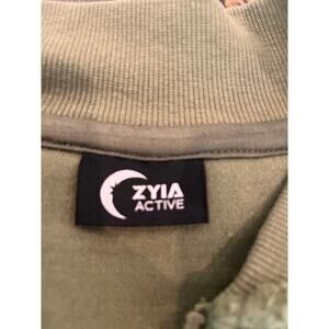 Zyia Active Olive Flying V Full Zip Fleece Jacket Women Large Preppy Fall Comfy