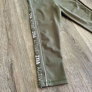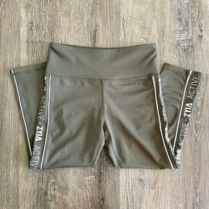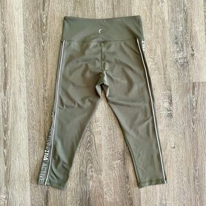 Zyia Active Women’s Olive Green Logo Stripe Cropped Capri Athletic Leggings