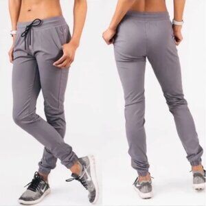 Zyia Active Peak Joggers Gray w/ Gold Zipper Detail Pockets Stretch Comfy Pants