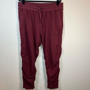 Zyia Active Plaza Jogger Pants Burgundy Ruched Seams Lightweight Runs Small XXXL