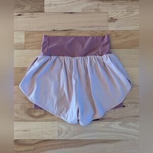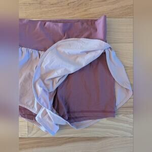 Women's Zyia active muted it's mood shorts in a mauve color. Flowy shorts with built in compression shorts underneath. In size large and in good used condition!