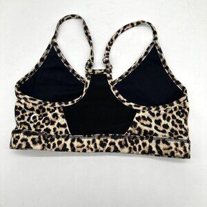 Zyia Active Sports Bra Women's Pullover Athletic Mesh Animal Print Black Beige S