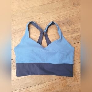 Zyia Active Storm Parallel Luxe Blue Ribbed Adjustable Sport Bra, Size Small.