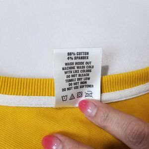 Add a zing of color to your Fall wardrobe’s palette with this rich mustard sweatshirt. This top’s crewneck style and cutoff length are born to layer—over everything from your favorite sports bra or tank, to a crisp white button-down. Dress is it up, or sweat it up—then rinse and repeat. This durable terry top is as versatile as it is colorful, so it can stand up to workouts and still look great for a night out. We improved on the breathable cotton feel by adding a hint of Spandex for added ease. Ribbed neck and cuffs. Warm and breathable cotton, accented with Spandex for stretch. Reinforced neckline and double top-stitched detailing for durability and shape retention. Cutoff bottom hem falls at natural waist. Fits true to size, relaxed. Fabric: 96% Cotton, 4% Spandex.