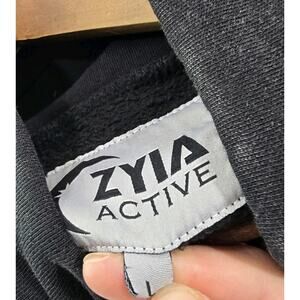 Zyia Active Sweatshirt Womens Large Black Pullover Mesh Turtleneck Boxy Crop