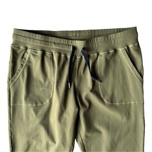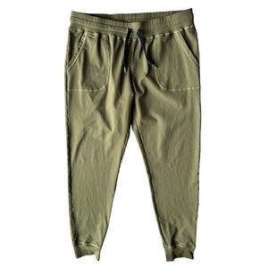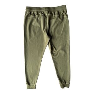 Women’s size XL olive green Unwind joggers by Zyia Active. These have a nice amount of stretch with fabric made of 87% nylon and 3% spandex. They hold their form well and have a nice wide flat waistband. Pockets at the hips. In great pre-owned condition. Measurements shown in photos.