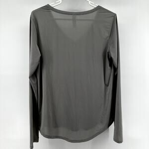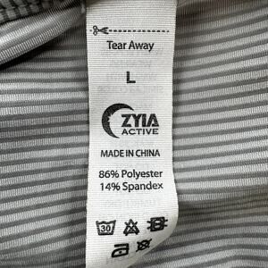 Zyia Active V Neck Long Sleeve Workout Top Striped Logo Pullover Gray Large