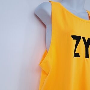 Zyia Active Vibrant Neon Orange Sheer Mesh Cut Out Logo Tank Top Size Medium