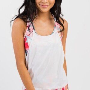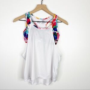 Zyia Active White and Floral Print 2 in 1 Sports Bra Tank Top Combo XS