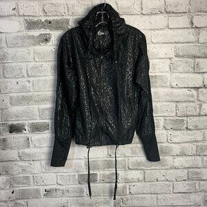Zyia Active Windbreaker Black Cheetah Print Full Zip Hooded UtilityJacket