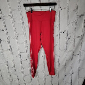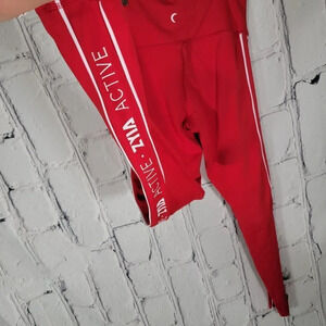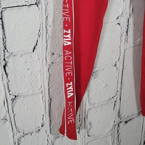 Zyia Active Womens Light N Tight Workout Pants Leggings Red Logo Stripe Gym 8/10