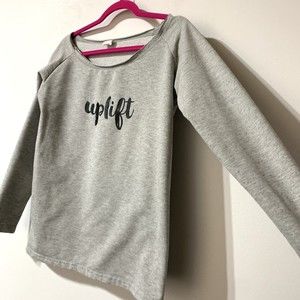 Zyia Active Womens Top Size S ? M ? Gray Speckle Spell Out UPLIFT Long Sleeve