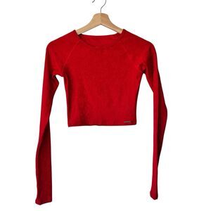 Zyia XS Active Red Snowflake Crop Long Sleeves athleisure