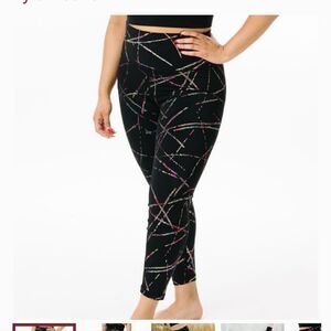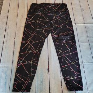 Zyia Black Abstract Print Elastic Waist High Waisted Athletic Leggings Sz 14-16