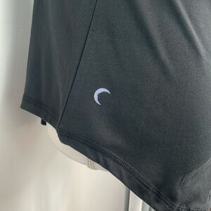 Zyia Black Effortless Tank Long. Size Medium. New with tags. No stains. Racer Back. Ribbon of ventilation down the back and a triangle of mesh front neck/chest. Longer in the back for yoga or weight training. Very soft. Rounded bottom hem. Armpit to pit measures 14 inches. Top of shoulders down sides 23 inches. Down front/back 26 inches. Seems to run a little small. Comes from a smoke free home.