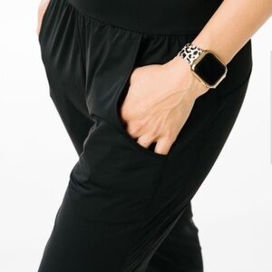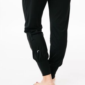From the long, smooth ankle cuffs to the relaxed cut, these joggers give off a "genie" vibe that's only half as magical as the feeling of wearing them. Lightweight, premium fabric with silky four-way stretch. Slightly more fitted than our classic Jogger in a Bottle. Relaxed, slouchy fit is perfect for weekends and leisure. Soft, no-roll waistband with half an inch of encased elastic. 4.5" high ankle cuffs. Reflective moon detail. Two generous front pockets. Fits true-to-size, relaxed. Fabric: 85% Nylon, 15% Spandex.