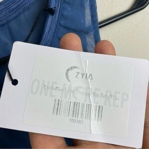 Zyia Blue Luxe Strappy Sheer Polka Dot Tank