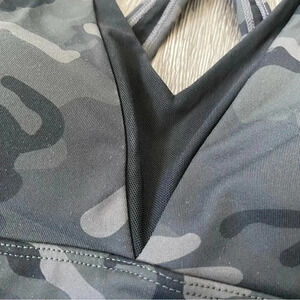 Zyia Forest Camo Adjustable Mesh Sports Bra Gray Black Camouflage: XS