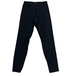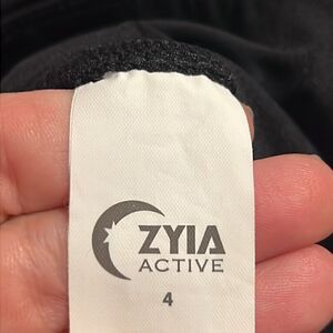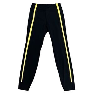 Zyia Leggings Woman's Size 4 Black Neon Yellow Stripe Luxe Hi-Rise Activewear