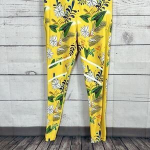 Zyia Leggings Womens 6-8 Yellow Light N Tight Floral Reflective Mesh Tropical