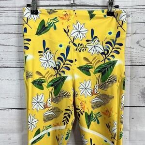 Zyia Active Womens Light N Tight Leggings size 6-8 Yellow Floral Reflective mesh