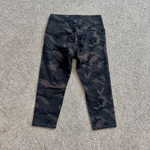 Zyia Luxe Hi-Rise Capri Legging 20", EUC, 8-10. Camo pattern with wide waistband- fitted design contours to your shape. 30" waist.