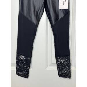 Zyia NEW Black Reflective Metallic Light n Tight 7/8 Leggings Size 2