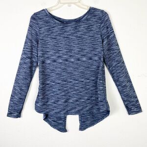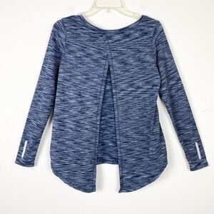 Zyia Navy Space Dye Long Sleeve Split Open Back Athletic Shirt