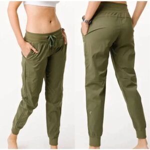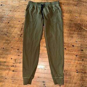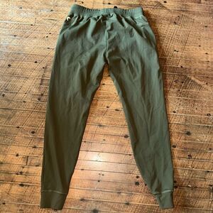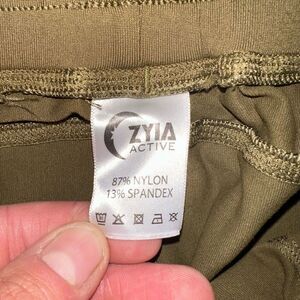 Zyia olive green, Athleisure, trail joggers. Pairs well with a muscle tee or crop top. Approximately 15 inches across the waist, 10 inch rise, and 28 inch inseam. In good, used condition. From a pet and smoke free house.