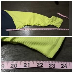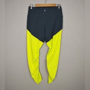 Zyia Parallel Luxe Hi-Rise Neon Yellow Gray Ribbed Leggings 7/8 Size 14-16