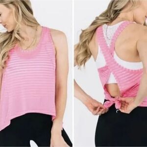 (CC) Zyia Pink & Silver Striped Split Back Tank Top, Size Small